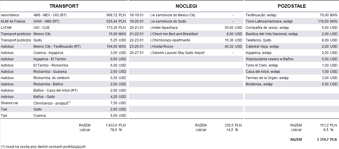 Czas najwyższy przejść do konkretów i pozwolić przemówić liczbom. Poniżej tabelka, w której znajdziesz wszystkie koszty z wyłączeniem jedzenia i napojów. Kliknij w obraz, by zobaczyć go w lepszej jakości.